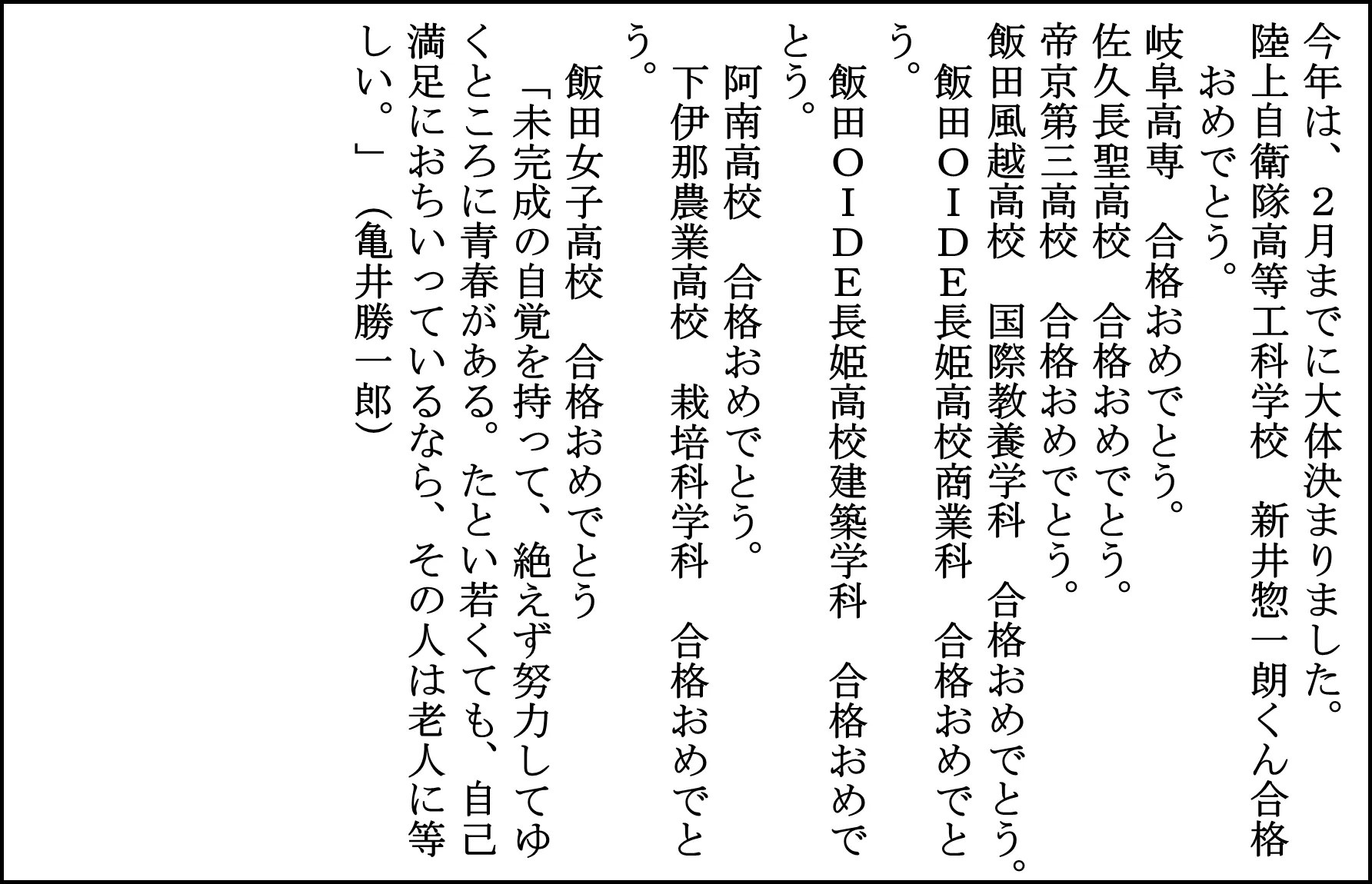 阿南高校 合格おめでとう。